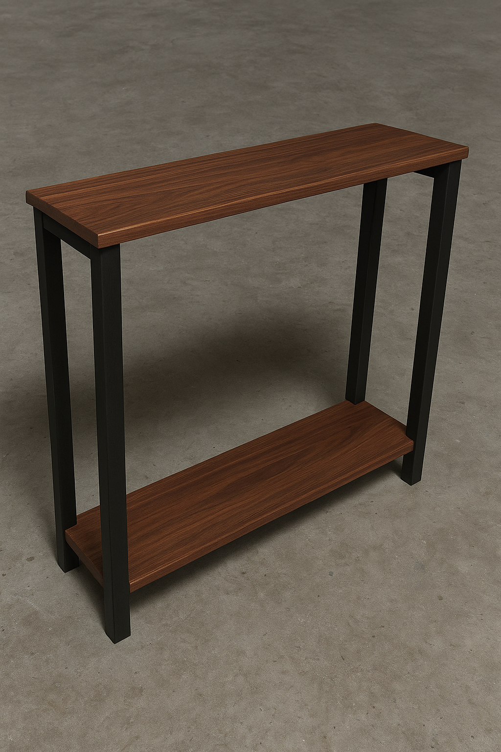Imagina entrar a tu casa y sentir que, de inmediato, algo te recibe con estilo. Su cubierta de madera en tono nogal irradia calidez y autenticidad, mientras que la base de patas negras aporta un contraste moderno y sofisticado que encaja en cualquier ambiente.